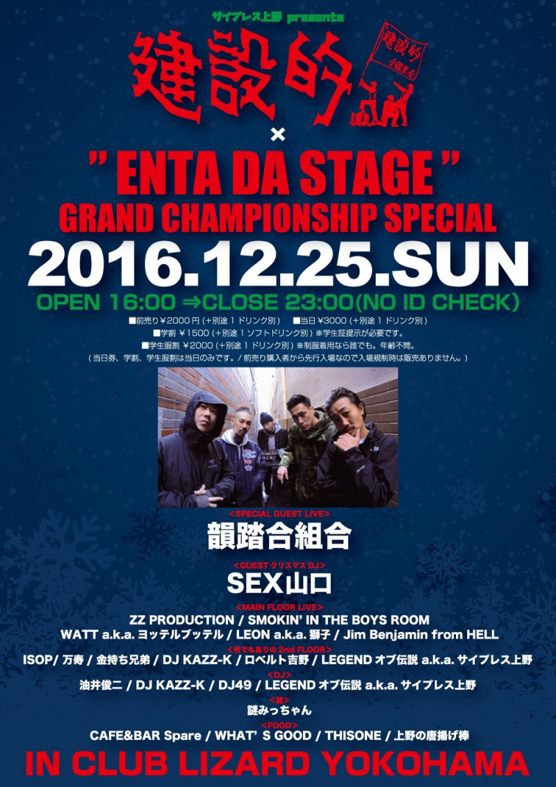 12/25(日)@横浜LIZARD『建設的』×『ENTA DA STAGE 2016 Grand Championship』